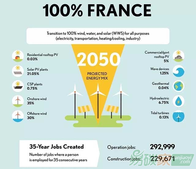交通、采暖/制冷、工業等領域,并測算出到2050年這35年間能源轉型行業所創造的工作崗位數量。七國2050年100%可再生能源情景分析,詳見下文。