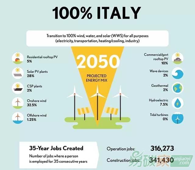 住宅屋頂光伏5%;太陽能光伏28%;集中式太陽能2%;陸上風電:32.5%;海上風電1.25%;商業/政府用房屋頂光伏10%;浪潮設備2%;地熱2%;水電7.5%;潮汐渦輪0%