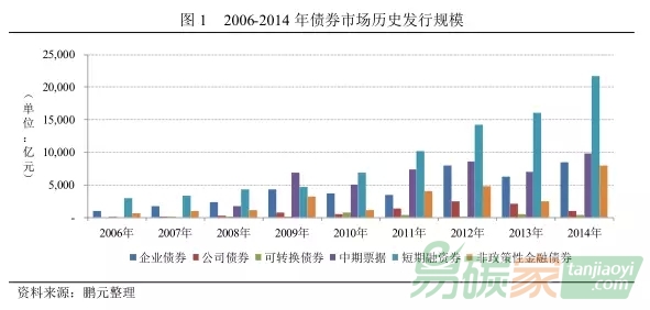 市場都進行了大幅改革和創新,表現在發行審批流程的簡化和效率的大幅提高,發行主體范圍的擴容、交易轉讓場所的拓寬以及專項債、項目收益債等創新品種的陸續推出,這些都助力中國債券市場一躍而成為全球第二大市場。2015年債券市場融資高達23.02萬億元,同比增長88.84%。我國債券市場的發展和創新給企業帶來了更多具有適用性的融資渠道,對企業信用面也形成了有力的外部支撐。鑒于此,鵬元研究推出2015年中國債券市場統計報告,其中涵蓋了全面、多維的債市發行規模、區域分布、利率利差、承銷等數據,以饗廣大關注債券市場的圈內朋友。