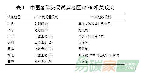 北京市發(fā)放的配額只能供北京控制排放企業(yè)履約,而不能流通到其他試點(diǎn)地區(qū)。2)中國核證減排量(CCER)是國內(nèi)自愿減排項(xiàng)目產(chǎn)生的減排量,此類項(xiàng)目與清潔發(fā)展機(jī)制(
