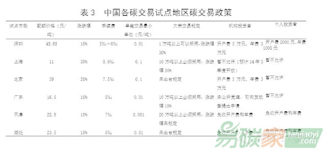 深圳雖然是試點(diǎn)省市中經(jīng)濟(jì)發(fā)達(dá)的地區(qū),但地理范圍小,沒有大型重工業(yè)企業(yè),第三產(chǎn)業(yè)居多,所以在納入門檻上設(shè)置的最嚴(yán),入圍的企業(yè)最多。此外,由于經(jīng)濟(jì)發(fā)展和政府思路的不同,各試點(diǎn)市場(chǎng)的交易規(guī)則各具特點(diǎn)。