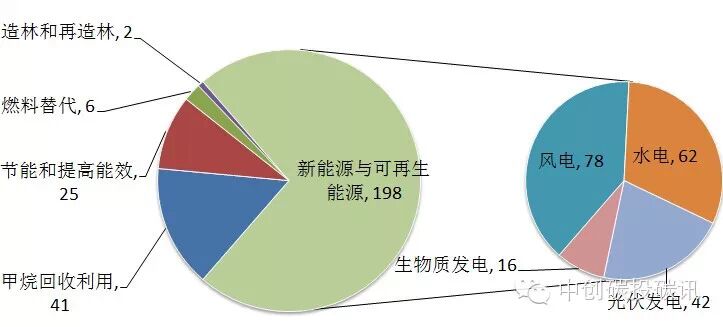 根據公示的審定項目PDD,按項目類型分布區分,目前公示的審定項目中新能源與可再生能源類項目有198個,占到全部審定項目的72.8%,其中風電、水電項目分別為78、62個,兩類項目占到全部審定項目的51%。另外,公示的審定項目含甲烷回收利用類項目41個,節能和提高能效類項目25個,燃料替代類項目6個,林業碳匯項目2個。在信息平臺公示的審定項目按類型分布如圖1所示。