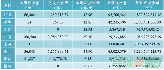 ccer成交9000噸,均為大宗交易。湖北碳市場上周共成交配額3.60萬噸,成交均價為34.90元/噸,較前一周上漲22.50%;湖北現貨遠期上周未成交。上海碳市場上周共成交配額1噸,成交均價為33.00元/噸,較前一周下跌21.17%;CCER成交75.87萬噸,均為協議轉讓。重慶碳市場上周共成交配額2.18萬噸(含成交申報2萬噸),成交均價為6.45元/噸,較前一周下跌6.93%。