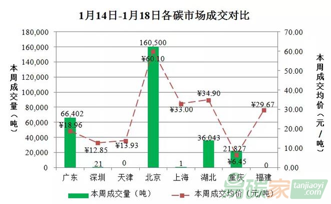北京碳市場上周成交配額16.05萬噸(含協議轉讓16萬噸),成交均價為60.10元/噸,較前一周下跌16.07%。