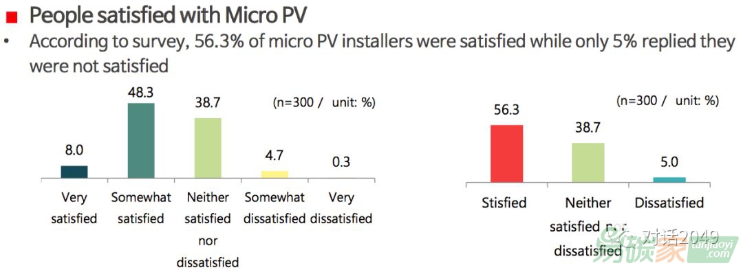 第三,市場機遇。現在各種分布式能源項目或者其它新型能源項目發展迅速,市民支持非常重要。我們之前所做的一項民意調查表示,56.3%的民眾對安裝太陽能光伏設施表示滿意,只有5%的民眾不滿意。大部分民眾的支持將促進項目順利向前推進。