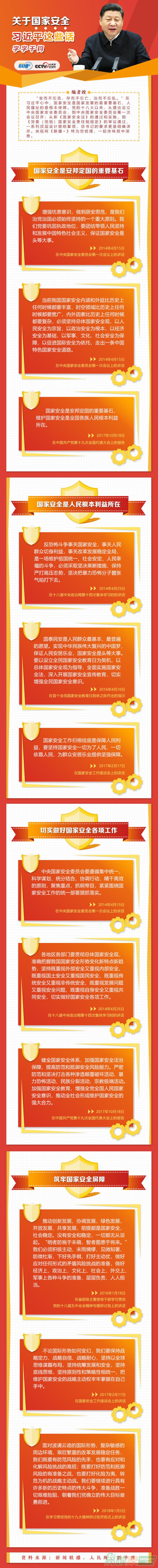 當今世界,安全的內涵和外延更加豐富,時空領域更加寬廣,各種因素更加錯綜復雜。在第四個全民國家安全教育日之際,回顧習近平在不同場合就國家安全發表的一系列講話,更能體會到:實現中華民族偉大復興的中國夢,保證人民安居樂業,國家安全是頭等大事。