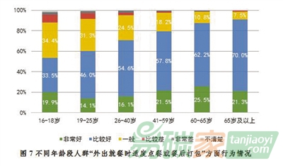 圖7 不同年齡段人群“外出就餐時(shí)適度點(diǎn)餐或餐后打包”方面行為情況