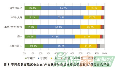 圖8 不同受教育程度公眾在“外出就餐時(shí)適度點(diǎn)餐或餐后打包”行為自我評(píng)價(jià)