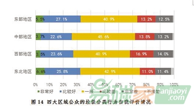 圖14 四大區(qū)域公眾的垃圾分類行為自我評(píng)價(jià)情況