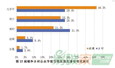 圖15 城鎮(zhèn)和鄉(xiāng)村公眾節(jié)假日燃放煙花爆竹情況統(tǒng)計(jì)
