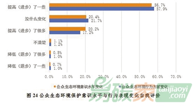 圖24 公眾生態(tài)環(huán)境保護(hù)意識(shí)水平與行為表現(xiàn)變化自我評(píng)價(jià)