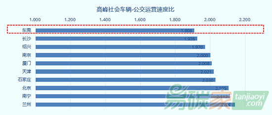 東莞高峰期公交速度與小汽車(chē)速度最接近此外,在研究范圍內(nèi)的城市中,二季度東莞市核心區(qū)內(nèi)的“高峰社會(huì)車(chē)輛-公交運(yùn)營(yíng)速度比”最小,小汽車(chē)速度是公交的1.908倍與上季度基本一致。東莞、長(zhǎng)沙、紹興3個(gè)城市的“速度比”小于2.000,這意味著,在高峰期、這些城市核心區(qū)內(nèi)的公交出行用時(shí)與小汽車(chē)的最接近。