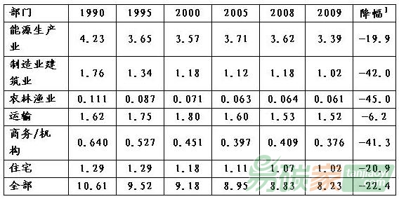 1990~2009年德國全部碳排放總量下降22.4%。2009年,位居碳排放量最高的部門仍是能源生產業,1990~2009年該行業碳排放降幅達19.9%。制造業建筑業也是重要排放部門,1990~2009年排放降幅高達42%。住宅則是碳排放量相對較高的消費部門,1990~2009排放減少20.9%。以運輸部門排放降幅最低,為6.2%,該部門只是在2000年后才表現出碳排放持續減少。