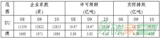 造紙等,2008~2012年是EU ETS第2期。2009年,EU ETS覆蓋企業經許可實際排放總量18.73億噸,占歐盟全部CO2排放的46.2%;其中德國企業經許可實際排放總量4.28億噸,占德全部CO2排放的52%。按歐委會安排,從2013年開始,EU ETS還會將