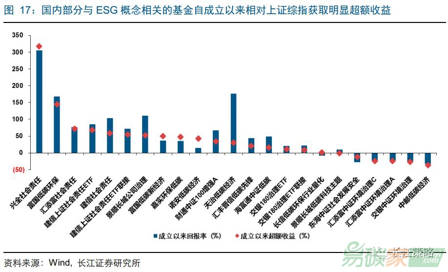 國內相關基金表現:近年部分ESG主題基金獲取較高回報率目前國內已有部分與ESG概念相關的基金,近年以來相對上證綜指獲取明顯超額收益。我們對近年國內與公司治理、低碳主題、環境保護、社會責任等ESG概念相關的基金表現進行了梳理,部分基金自成立以來獲取良好回報表現。尤其是在2014年下半年-2015年上半年的牛市