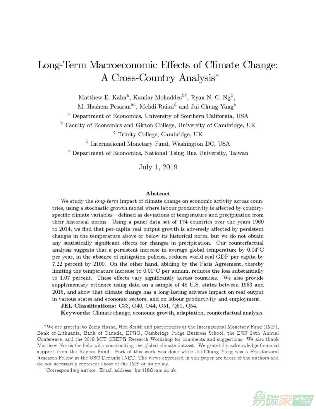 這份名為《氣候變化對宏觀經(jīng)濟的長期影響:跨國分析》的報告由美國南加州大學、英國劍橋大學等機構研究人員合作完成。過去有研究認為,氣候變暖對窮國和炎熱國家經(jīng)濟的影響要比對富國和寒冷國家的影響更大,而該研究則對這一論斷提出質(zhì)疑,認為如不采取適宜的氣候變化