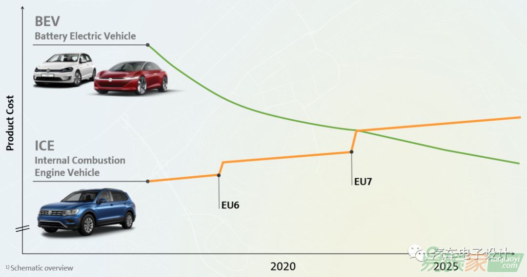 2019年6月31日,歐盟正式通過新法案(EU)2019/631,其中提出2025年后歐盟境內(nèi)新登記乘用車碳排放量要比2021年減少15%(乘用車 80.8g/km CO2),2030年起要求乘用車比2021年碳排放水平 減少37.5%(乘用車59.4 g /km),超額部分罰款幅度不變,該法案將于2020年1月啟動。往后來看,要求越高,按照95歐元每g/kmCO2的罰款來看,面對燃油車不太可能下降的成本,總的罰款成本和電動汽車來說,不得不迫使歐洲車企去做一些決策。