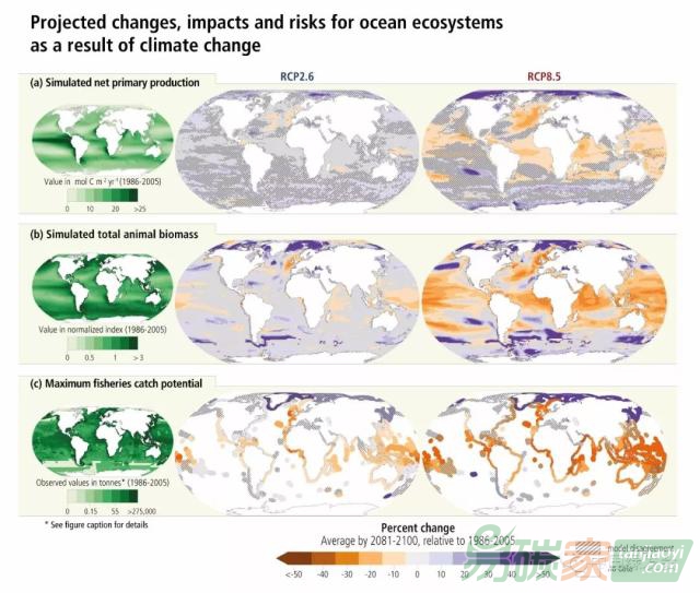 海洋升溫和酸化、氧氣損失和營養供應變化已在影響著沿海地區、遠海和海底的海洋生物分布和豐度。