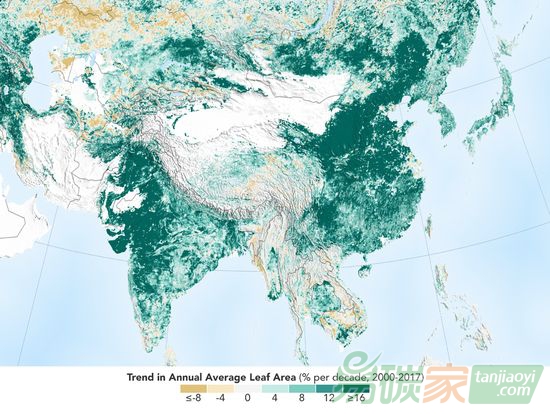 NASA表示,在中國為全球綠化進程做出的貢獻中,有42%來源于植樹造林工程,對于減少土壤侵蝕、空氣污染與氣候變化發揮了作用。全球從2000年到2017年新增的綠化面積中,約四分之一來自中國,貢獻比例居全球首位。