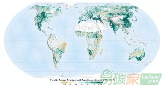 航空航天局NASA發布了監測全球植被情況的衛星圖,NASA的研究指出,過去近20年來,地球表面共新增超過200萬平方英里(約5.18億公頃)的植被面積,相當于多出一塊亞馬遜雨林。而中國和印度盡管國土面積僅占全球陸地的9%,但中印兩國為這一綠化過程貢獻超過三分之一。該研究主持者之一、波士頓大學地球與環境科學系博士陳池(音)對此表示不可思議,“考慮到人口過多的國家一般存在對土地過度利用的問題,這個發現令人吃驚?!?/div>