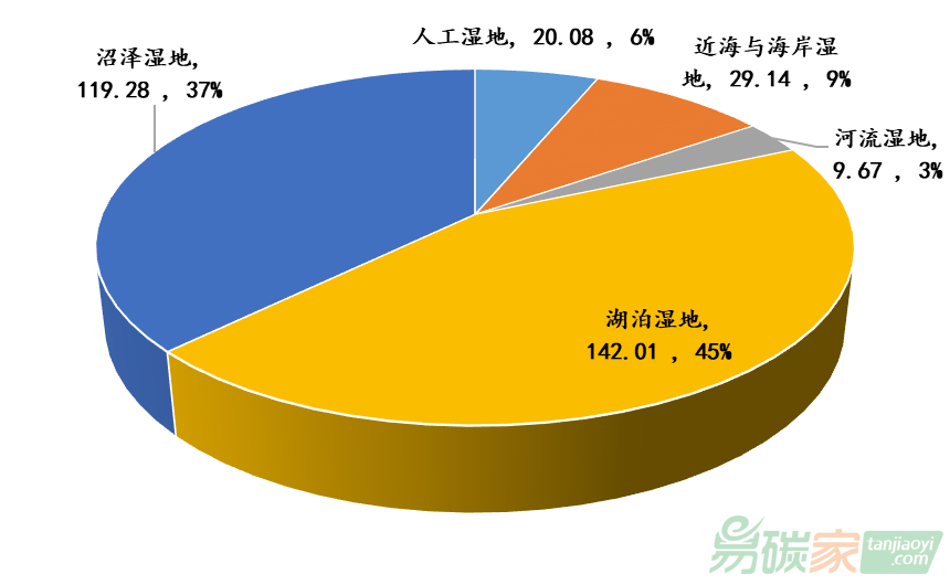 中國國際重要濕地的分類面積(單位:萬公頃)目前56處國際重要濕地中,分布有濕地植物2114種,濕地植被覆蓋面積173.94萬公頃。分布有濕地鳥類約240種。在外來物種入侵方面,互花米草是入侵近海與海岸類型國際重要濕地的主要外來物種,上海崇明東灘為治理互花米草入侵提供了樣板,通過圍堤、刈割、曬地、定植、調水等措施,有效改善了互花米草入侵引起的一系列生態環境問題,使互花米草入侵得到有效控制。