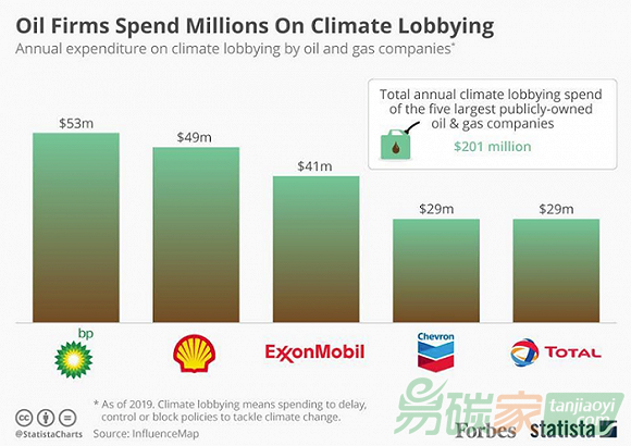 過去30年間,化石燃料行業、政治說客、媒體大亨和自媒體一直在散播對氣候變化的懷疑,甚至想證明氣候變化根本不存在。最新數據顯示,全球五大國有石油和天然氣公司每年約花費2億美元進行游說,以控制、推遲或阻止具有約束力的氣候