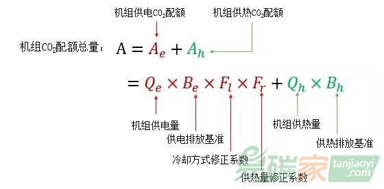 根據(jù)《2019年發(fā)電行業(yè)重點排放單位(含自備電廠、熱電聯(lián)產(chǎn))二氧化碳排放配額分配實施方案(試算版)》(以下簡稱“2019年發(fā)電行業(yè)配額分配方案試算版”),配額分配公式如下圖所示: