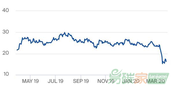 排放權配額價格走勢(2019年3月28日至2020年3月27日)來源:洲際交易所(ICE), 2020