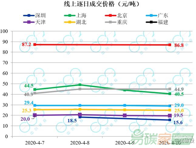 北京市場配額交易價格最高,線上成交均價為87元/噸。