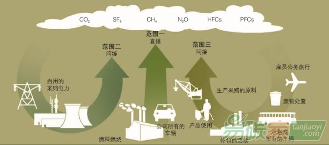 電力產生的間接溫室氣體排放,是由企業消耗的外購電力產生的溫室氣體排放,包括蒸汽、供暖和供冷等;范圍三是降低其他間接溫室氣體排放,主要來自于企業供應鏈中其他企業的排放。