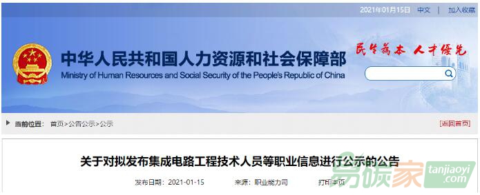 人力資源和社會保障部日前發布《關于對擬發布集成電路工程技術人員等職業信息進行公示的公告》,擬新增18個職業,調整變更21個職業。其中,