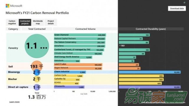 此外微軟還通過資助重新造林項目或從空氣中捕獲溫室氣體的技術來清除大氣中的二氧化碳。到目前為止,微軟主要依靠森林來吸取和儲存其碳排放。微軟表示,去年它從大氣中清除的碳中,只有不到 1% 是通過新興的直接空氣捕捉技術獲取的。
