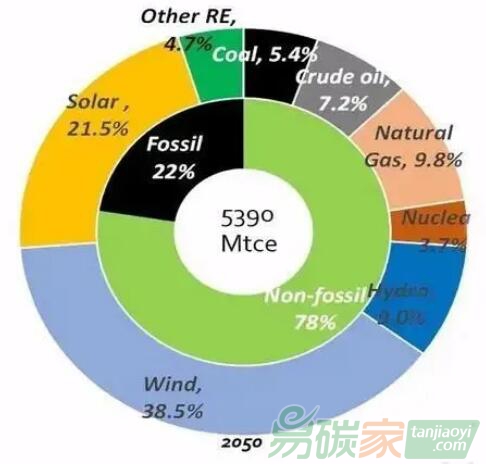 到2050年,中國風電將占到能源消費的38.5%,光伏占到21.5%,排在之后的就是天然氣占9.8%,水電占到9%。而能源轉型帶來的成本更多是近中期成本,其中包括可再生能源投資、電網靈活性改造等。國家發改委能源研究所可再生能源中心主任趙勇強說:“長期來說,電力系統的成本可以下降約20%,而且成本結構將發生很大的變化。”