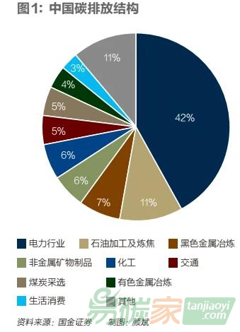 電力行業為主,火力發電是國內42%的碳排放來源,石油