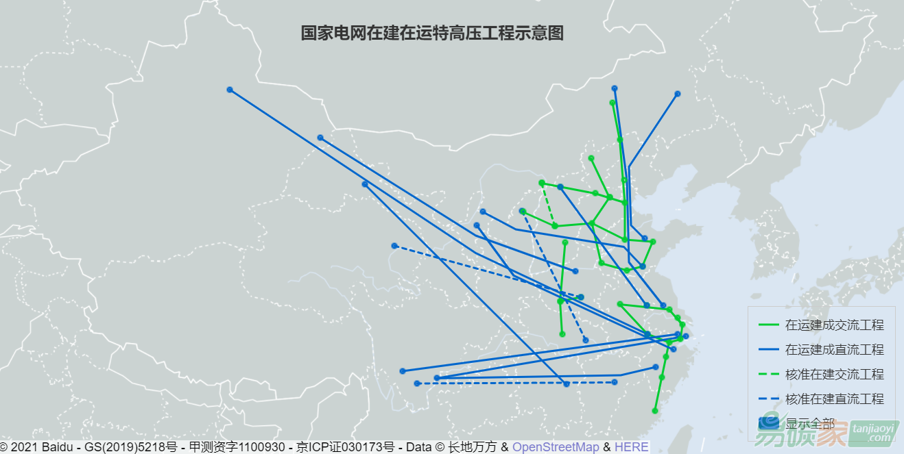 圖:國家電網在建在運特高壓工程示意圖。(來源:國家電網官網)