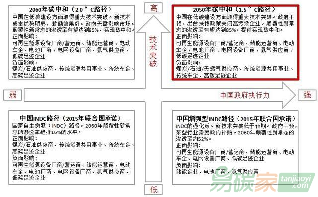 表|中國碳排放路徑情景分析圖資料來源:清華大學氣候變化與可持續發展研究院,《中國長期低碳發展戰略與轉型路徑研究》,UBS