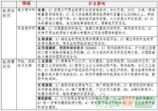 表|我國碳中和實現目標對主要行業的影響資料 來源:安永