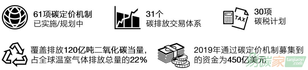 同時,根據世界銀行的統計分析,截至2020年,全球共有61項已實施或者正在規劃中的碳定價機制,包括31個碳排放交易體系和30個碳稅計劃;覆蓋46個國家和32個次國家級司法管轄區。