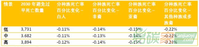 除了大幅減少溫室氣體排放外,IRA還可以減少有害健康的顆粒污染物排放。模型發現,在不同情景下,空氣污染物減排可以在2030年避免3700至3900人的死亡,避免99000至100000次哮喘發作,以及405000至417000個損失的工作日。