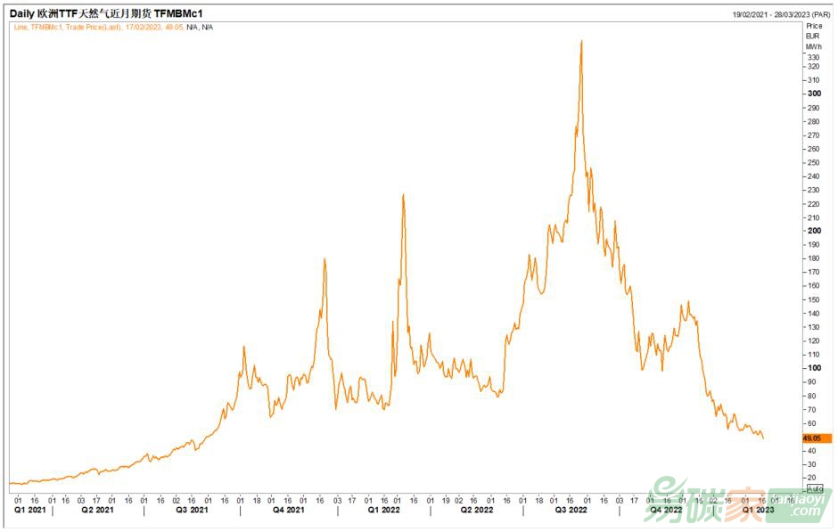 市場和對冬季能源短缺的擔憂之后,歐洲能源危機終于出現了緩和的跡象。TTF天然氣價格隨著暖冬天氣一路下跌,從去年的幾百歐元,下跌至目前的50歐元/MWh以下,和2021年秋季的水平一致。因此,多家機構紛紛調高了對歐盟2023年經濟增長的預期,不再認為其有經濟衰退的風險。歐盟委員會預期歐盟GDP在2023年增長0.8%,2024年增長1.6%,高于其去年秋季的預測。這就意味著,此前受到高漲用能成本沖擊而關停的能源密集型工業,能陸續恢復生產。工業活動的復蘇,也就意味著其