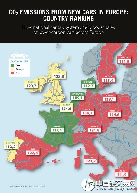 政策,不僅提高了燃油效率,而且刺激了低碳排放汽車的消費,成為歐盟境內新轎車碳排放量最低的國家。而德國和波蘭則由于政策寬松,兩國的新車排放量為歐盟最高。