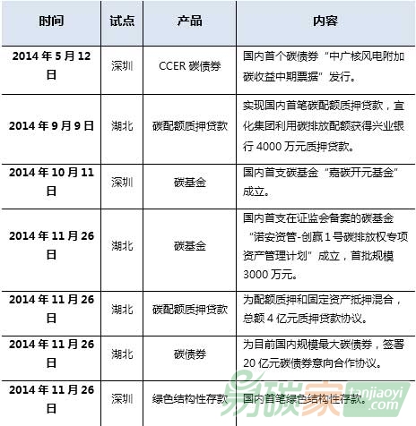 碳基金、碳信托等金融創(chuàng)新產(chǎn)品和服務(wù)方式,試點(diǎn)碳市場(chǎng)的服務(wù)范圍和服務(wù)功能進(jìn)一步完善。近期各試點(diǎn)碳市場(chǎng)推出的