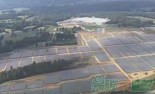圖為位于美國北卡羅來納州的蘋果數據中心太陽能電池陣。圖片來自WCNC-TV