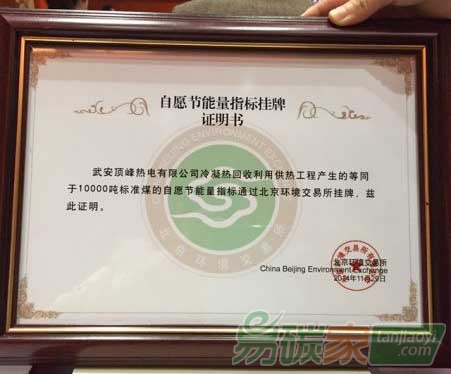 武安頂峰熱電有限公司冷凝熱回收利用供熱工程產(chǎn)生的等同于10000噸標(biāo)準(zhǔn)煤的自愿節(jié)能量指標(biāo),目前本項(xiàng)目掛牌量增加到1.6萬噸了,有需求的朋友可以聯(lián)系13701007233