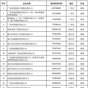 廣東省2016年度控排企業名單,