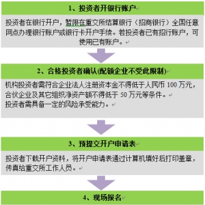 (一)投資者在銀行開戶,暫限在重交所結算銀行(招商銀行)全國任意網點辦理銀行賬戶或銀行卡開戶手續。新開招商銀行賬戶達正常可用狀態大概需5個工作日,因此可同步開始重交所碳排放賬戶開戶流程。若機構投資者已 ...