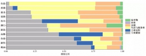 港澳臺城市排放特征 Emissions of Hong Kong, Macau and Taiwan cities注:上圖是排放結構,下圖是城市人均排放和單位GDP排放柱形圖。下圖中:柱形高度(左Y軸)代表人均二氧化碳排放,柱形寬度代表人口;柱形顏色越 ...