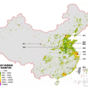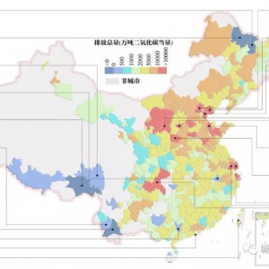 中國城市溫室氣體排放空間格局GHG emissions of Chinese cities 注:藍(lán)灰色文字框標(biāo)注排放最低的10個(gè)城市(數(shù)字代表排序從小到大),橘紅色文字框標(biāo)注排放量最高的10個(gè)城市(數(shù)字代表排序從大到?。?。 Note: The blu ...