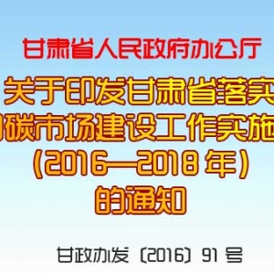甘肅省人民政府辦公廳關于印發甘肅省落實全國碳市場建設工作實施方案(2016—2018年)的通知甘政辦發〔2016〕91號各市、自治州人民政府,蘭州新區管委會,省政府有關部門,中央在甘有關單位:《甘肅省落實全國碳市場 ...